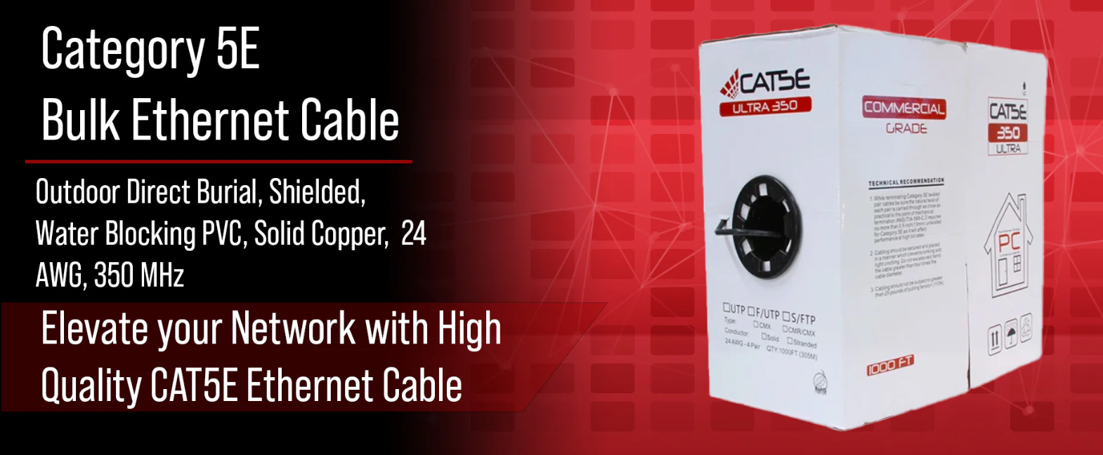 ສາຍ CAT5E ຝັງໂດຍກົງພາຍນອກຂອງພວກເຮົາ, ພ້ອມດ້ວຍຊັ້ນບລັອກນໍ້າ, ເປັນທາງເລືອກທີ່ດີທີ່ສຸດສໍາລັບຄວາມຕ້ອງການເຄືອຂ່າຍສຽງ, ຂໍ້ມູນ, ວິດີໂອ ແລະ ຄວາມປອດໄພພາຍນອກຂອງ...